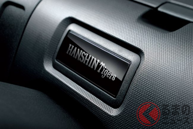 極めつけはドアを開けた際に、応援歌「六甲おろし」のメロディが流れるオルゴールを装備するほか、キーレスは専用イエローとなり、キー本体には阪神タイガースの「H」と「T」を組み合わせたマークと、メモリアルイヤーを象徴する「2003」のロゴをあしらっています。