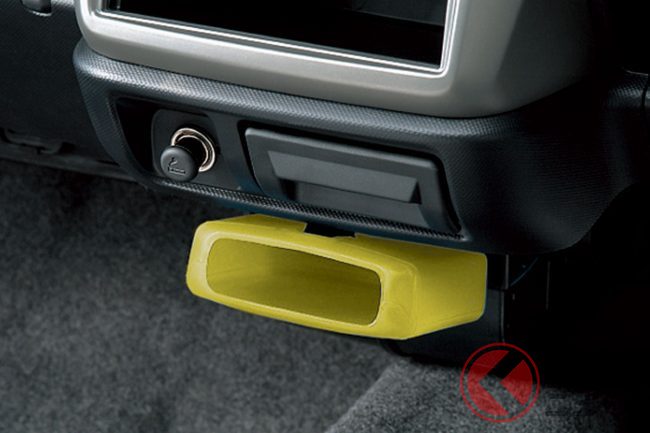 インテリアにも各部に黄色のアクセントを取り入れ、「プチゴミ箱」やカップホルダーもイエローの専用品を装備します。