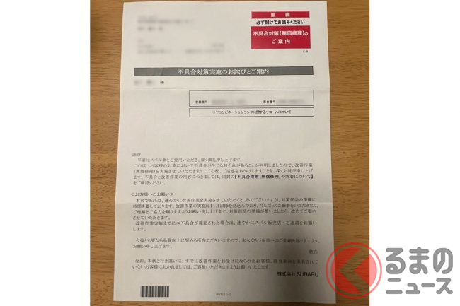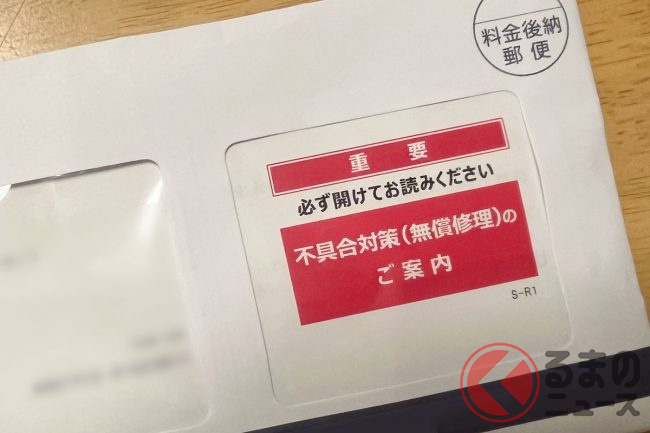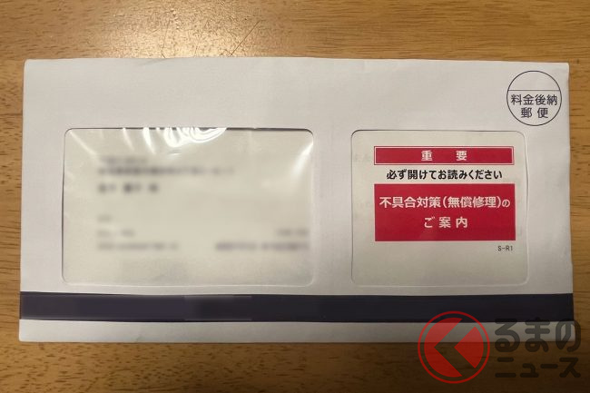 所有するクルマのディーラーから「重要なお知らせ」といった封筒が届き、開けてみると「純正部品の不具合・無償交換のお知らせ」なる文言が記載されています。