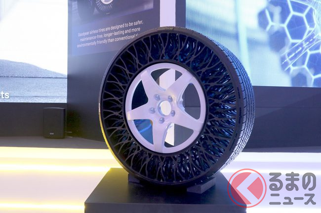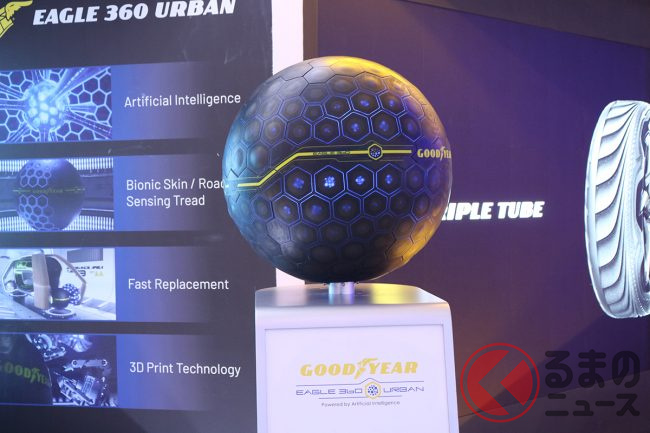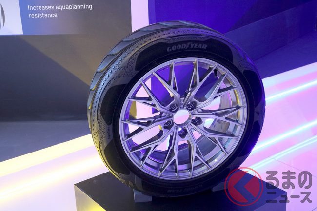 また、グッドイヤーは、これまで業界をリードしてきた125年の技術革新を強調し、今後、さらなる持続可能な「Better Future(ベター フューチャー)」へのコミットメントを強化することを発表しました。具体的には、2030年までに100%サステナブルな素材でメンテナンスフリーのタイヤを開発するという目標を掲げ、今回のイベントでは90%サステナブルな素材のデモタイヤを展示しています。