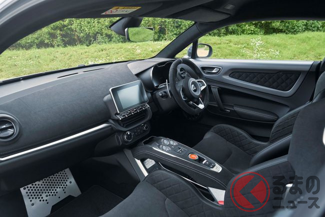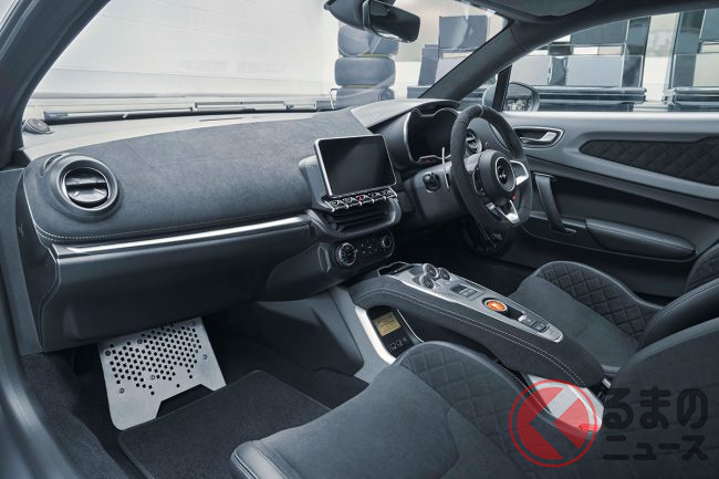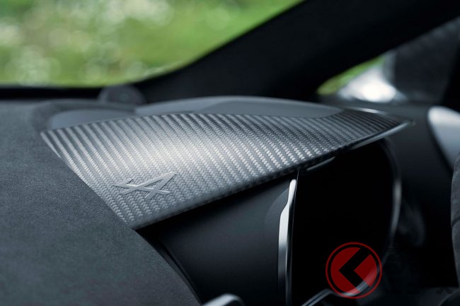 A110 S エンストンのベースとなるのは「A110 S」で、エンストン工場内で製造されたカーボン製のメーターバイザーとセンターコンソールを装備しました。