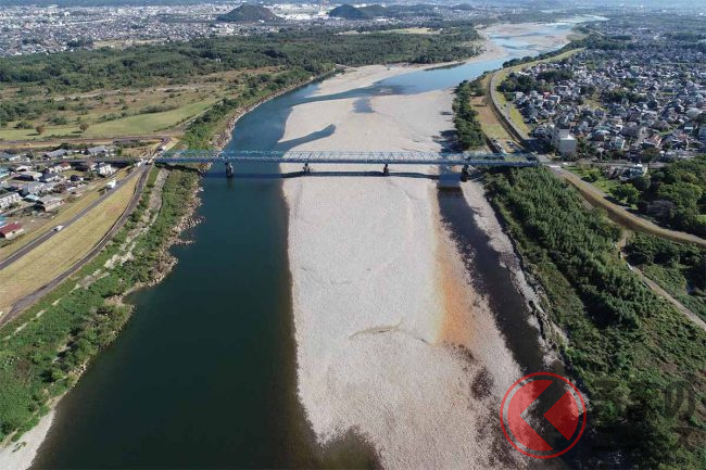 2021年5月、大雨による増水で橋脚が傾き、トラス橋の構造体も歪んだため通行止めに。同年9月には国が復旧工事に着手し、2022年8月には歩行者用の仮橋が下流側に開通しています。