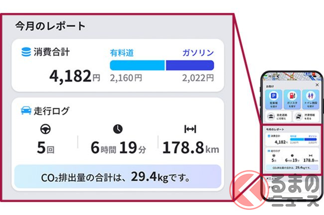 道路幅や車線数、信号の数や交差点の曲がりやすさまで考慮した質の高いルート探索・案内をはじめとした高精度なナビゲーション機能と、独自に保有するプローブデータとリアルタイム情報を活用したリアルタイム予測機能、運転中の困りごとやトラブルをサポートするドライバーアシスト機能を搭載しています。さらに、CO2排出量やガソリン代金を可視化することで、「環境にもお財布にも優しい運転」を促すとしています。