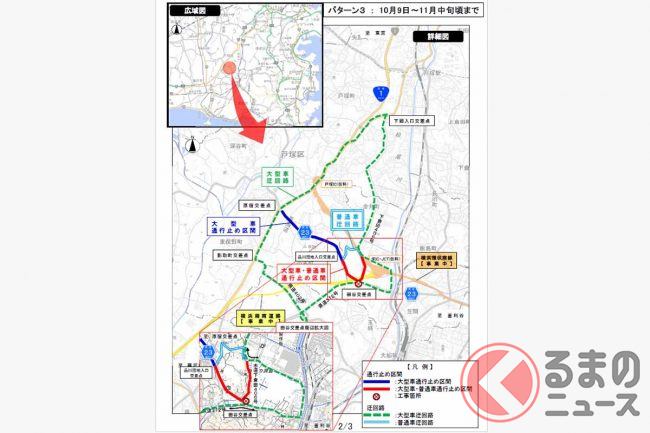 国土交通省関東地方整備局横浜国道事務所によると、期間は、2023年10月9日から11月中旬までのうち延べ27日間。時間は一部を除き各日夜0時から朝5時までです。