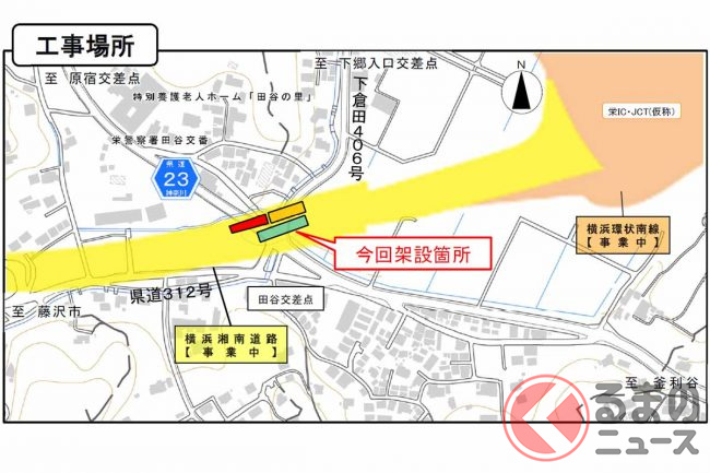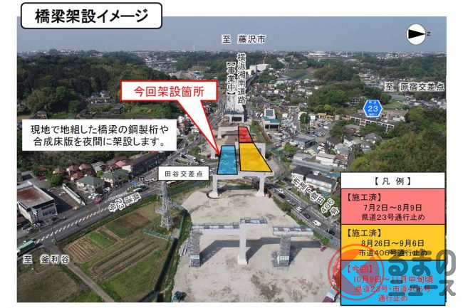 「建設中の圏央道」橋桁架けます! 国道1号原宿交差点から県道で1か月交通規制 横浜湘南道路の建設進む