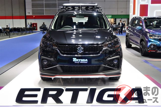 めちゃワイルド! スズキがスポーティな「SUVミニバン」実車展示! 迫力マスクの「エルティガ SMART HYBRID」タイで公開