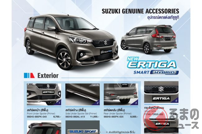 タイにおけるエルティガ SMART HYBRIDの販売価格は、ベースグレードのGLで78万3000バーツ(約320万円)、10インチのタッチスクリーンやバックカメラを標準装備とした上位グレードのGXが83万9000バーツ(約343万円)です。