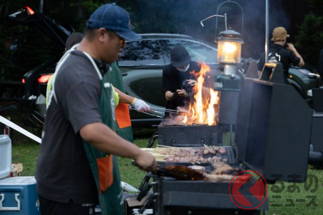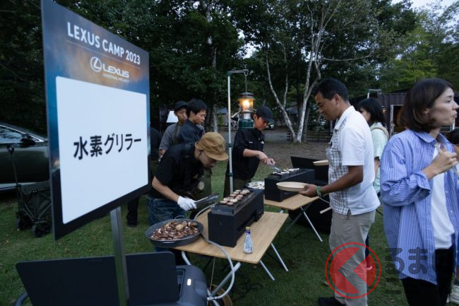 そしてアウトドアのお楽しみ“外メシ”の時間には、トヨタが開発を進めている水素バーナーグリルで焼き上げるBBQコーナーが用意されていました。