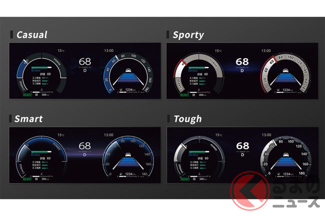 なお、新型アルファード/ヴェルファイアでは、既定のメーターデザインとして「Casual」「Smart」「Tough」「Sporty」の4種類が設定されており、画面の操作を通じて、それぞれのデザインに切り替えられます。