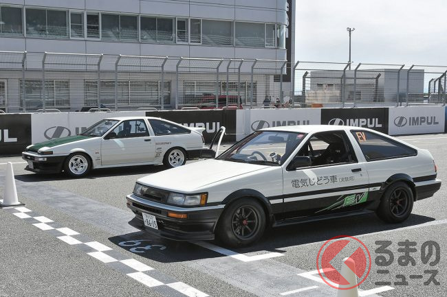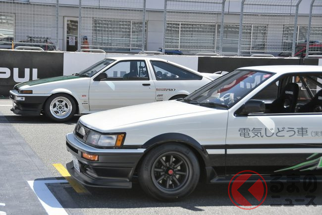 トヨタが「AE86」で爆走勝負!? 100m加速で2台のハチロクが激アツバトル、なぜ? ガソリン車とBEVはどっちが速いのか