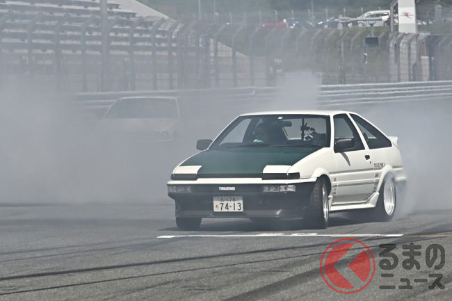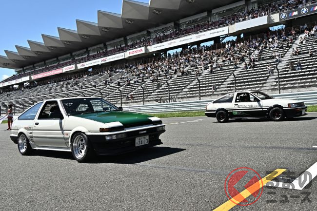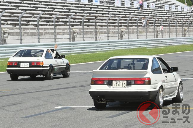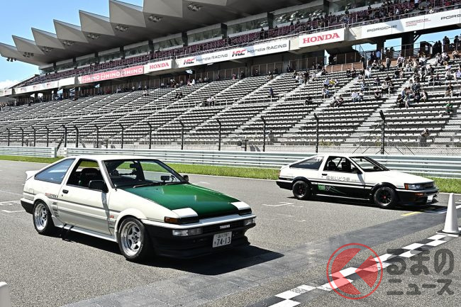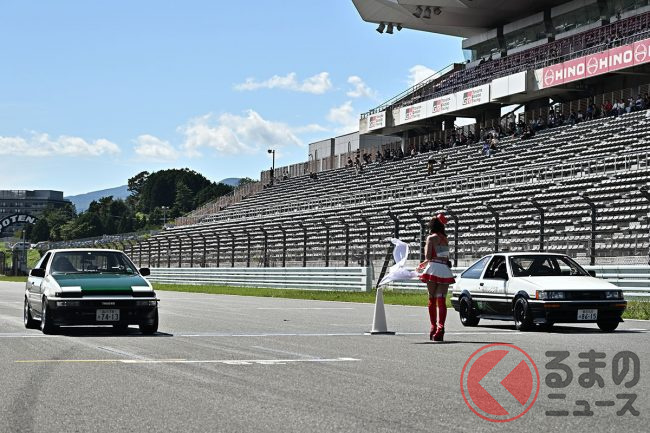 富士スピードウェイ(静岡県小山町)で2023年9月24日に、2台のトヨタ「AE86」による「世紀の対決」が行われました。