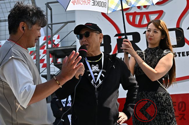 そのなかで佐藤社長が「打倒マメ号!」と発したことにより、土屋圭市氏が勝負を受けることになったのですが、佐藤社長のAE86は長いレストアの旅に出ており動かすことができません。