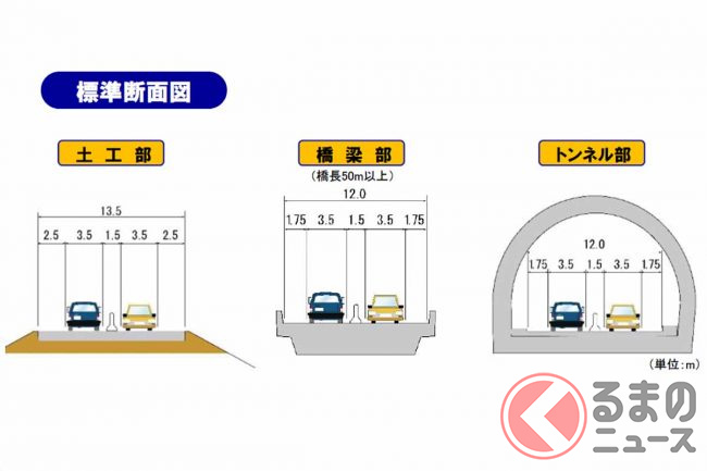 2016年度に事業着手。道路は幅員12.0~13.5m、2車線、設計速度80km/hで整備されます。