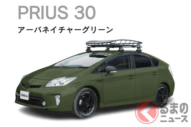 さらに、つや消しブラックエンブレムやブラックホイール×オールテレーンタイヤ、プリウスにはスーリー製ルーフラックを装着するなど、クロスオーバーSUVのような街とアウトドアの両方で映えるスタイリングに変更。