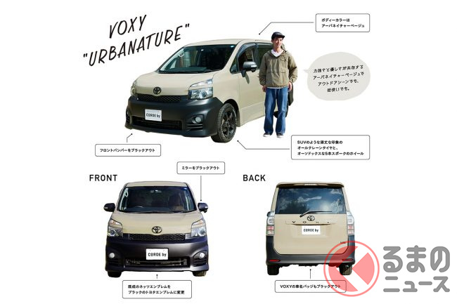 トヨタ“SUV風”「ノア/ヴォクシー」登場!? 新色オシャグリーン&ベージュ内装も可能! 中古車カスタム「コーデバイ」 対象車種とカラーが追加へ