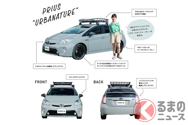「URBANATURE<アーバネイチャー>」というコンセプトのもと、先々代「プリウス」(30系・2011年モデル)と先々代「ヴォクシー」(70系・2010年モデル)をベース車両に選定したカスタマイズを提案しています。