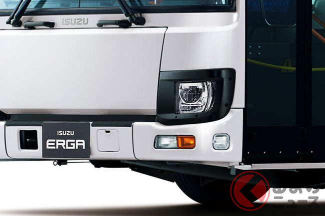 3300万円超え! 79人乗りのいすゞ精悍顔「新モデル」登場! 安全性能向上した新「エルガ ハイブリッド」発売