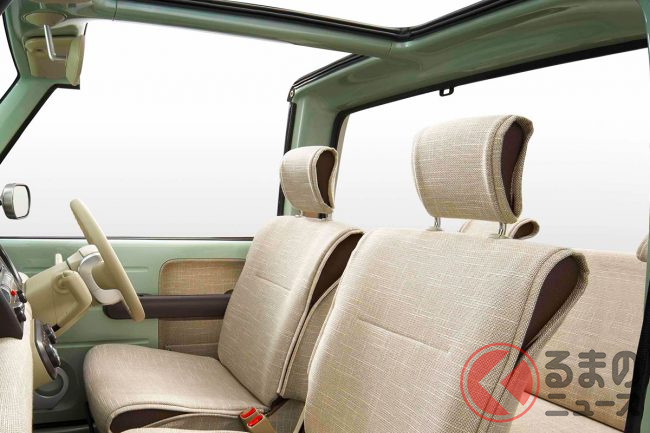 ダイハツ斬新「オシャレオープン軽トラ」に熱視線! 丸目ライト&優しいグリーンが映える「バスケット」に市販化希望の声多数