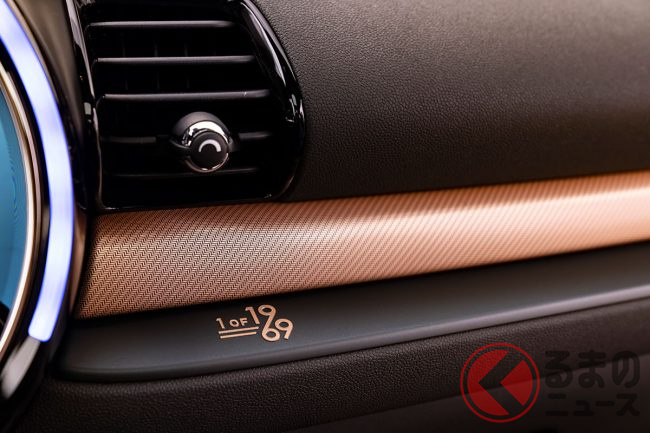 また、Cピラーやミニシリーズに共通するフロントフェンダーの加飾パネル「サイドスカットル」には世界限定1969台中の1台を意味する「1of1969」のロゴをあしらっています。