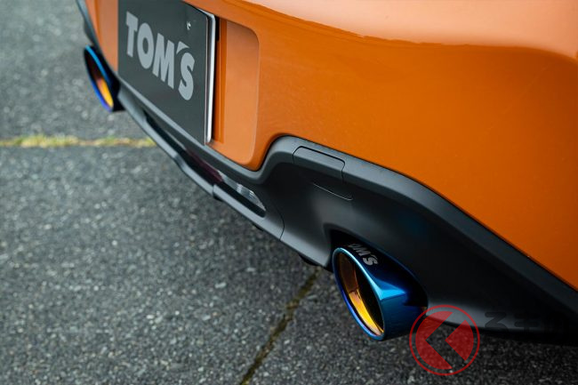 さらに専用エキゾーストはセンターパイプにチャンバー構造を取り入れた「TOM’Sバレル」を採用。ベース車が持つ2.4リッターエンジン(FA24)のトルクフルな特性をさらに向上させ、低速域から高速域までよどみなく吹け上がり、全域にわたってトルクフルな性能を発揮します。