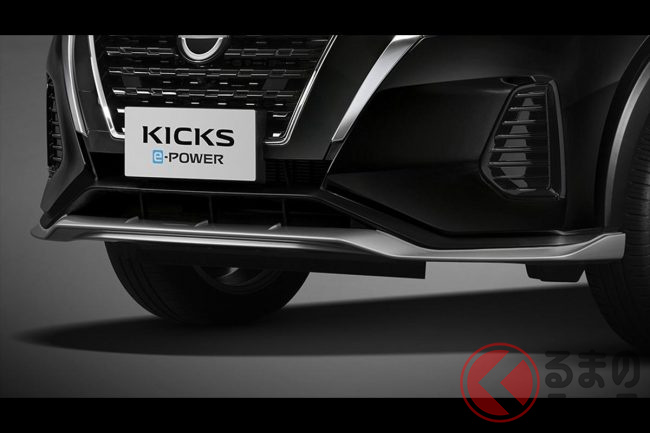 今回、フィリピンで発売されたキックスの特別仕様車「キックス e-POWER スポーツエディション」は、ギャラクシーブラックで塗装されたボディに特別なエアロパーツを標準装着したスポーティな仕様で、高級感のあるシルバー塗装があしらわれたフロントスカートやサイドスカート、リアスカートが足元を彩ります。