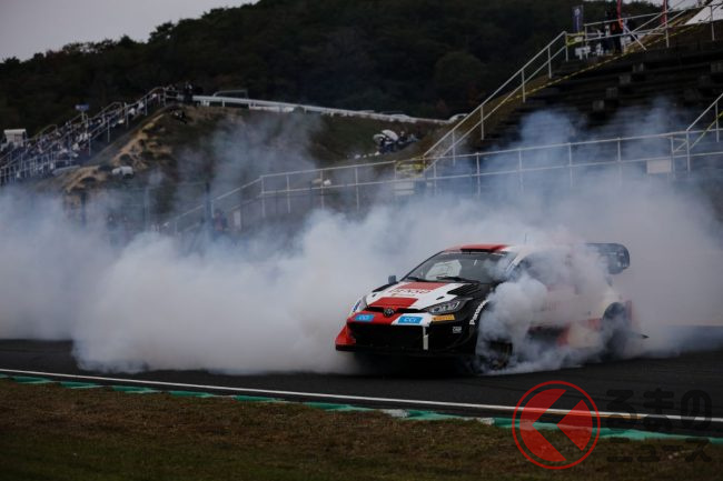 今回のフォーミュラD最終戦には、勝田貴元選手も登場し、「GRヤリス Rally1」でデモランを披露。