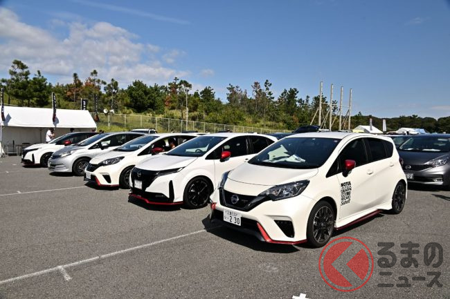 オーテック/ニスモの車両であれば参加できるとあり、その車両構成を上位から見ると、ノート、マーチ、セレナ、シルビア、エルグランド、エクストレイル、スカイライン、オーラ、ステージア、コンパクト/軽、セダン/スポーツ他、SUV系、フェアレディZ、ミニバン/ワゴンと、書き出しただけでも様々なジャンルのクルマがいます。