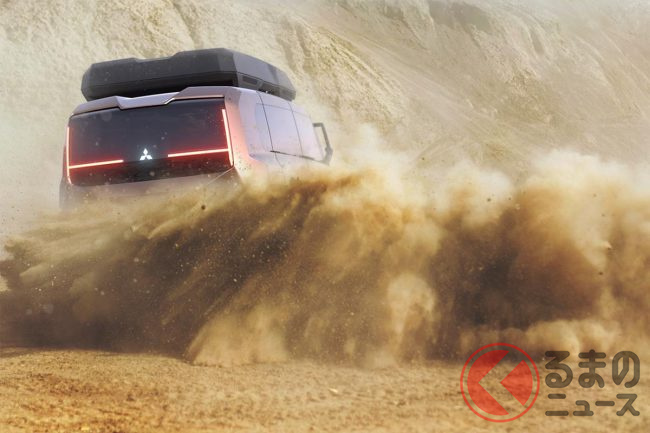 今回の新たに公開されたコンセプトカーの写真では、砂漠のような荒れ地をアウトドア仕様のワンボックスカーが走行している様子が見受けられ、画像からも同車がデリカシリーズの新型モデルであることを予感させる内容となっています。