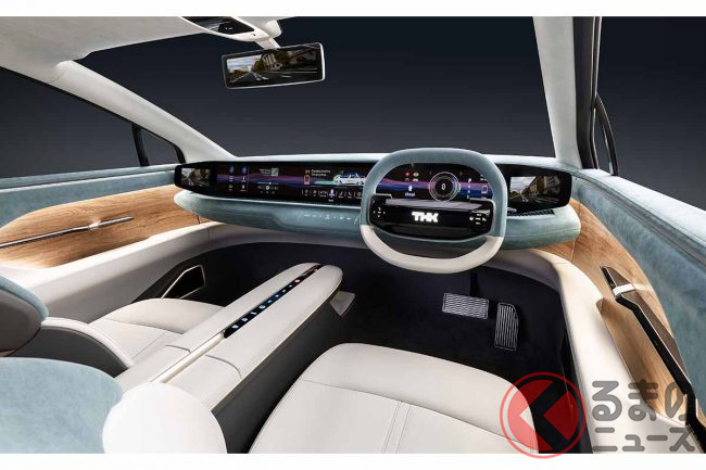 車内に採用したステルスシートスライドシステムは、LMガイドを採用してフロアの完全なフラット化を可能とし、高級感ある快適な空間を演出。さらに非接触給電システムも採用するなど、LSR-05はTHKが目指す未来に向けた新しいモビリティの姿を表現しているといいます。