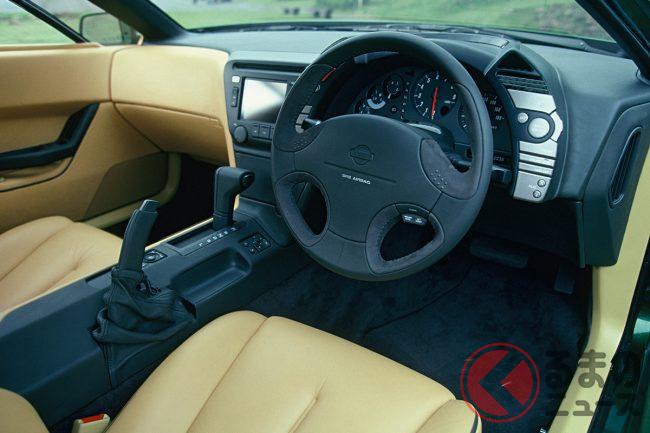 日産の斬新「最上級3ドアスポーツクーペ」がカッコイイ! 「鮮烈グリーン×豪華ベージュ」内装がめちゃオシャレ! 斬新デザインの「AP-X」は誕生が早すぎたのか?
