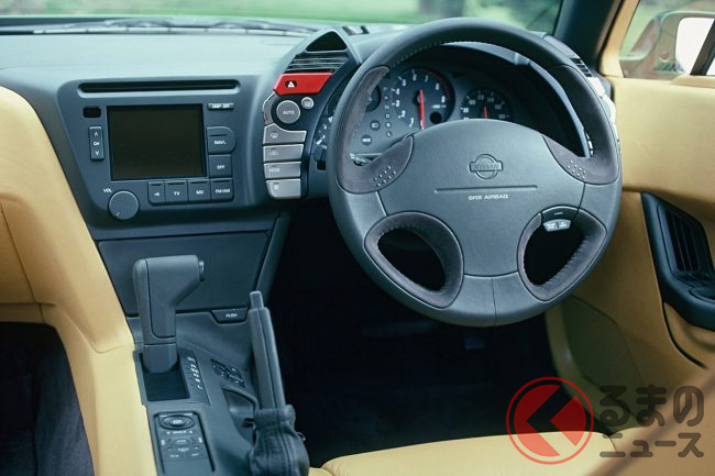 メーター左右には「スカイライン」(R32型)で採用されていたようなエアコン/オーディオスイッチを集約したパネルが設けられました。