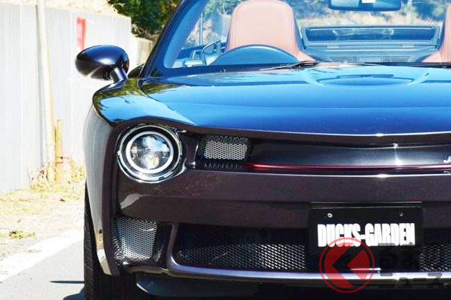 同車についてダックスガーデンは「マツダ『ファミリア ロータリークーペ』をモチーフに大人が満足できるカスタムカーを追求し開発した」といい、フロントフェイスやテールの表情にその片鱗を感じることができます。