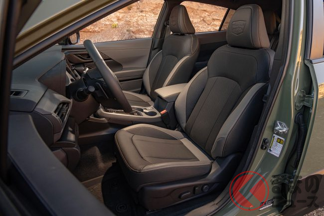 内装はアウトドアに最適な仕様としており、シートには耐水性に優れた素材を採用。フロントシートのヘッドレストに「Subaru Wilderness」のロゴがエンボス加工で施されています。