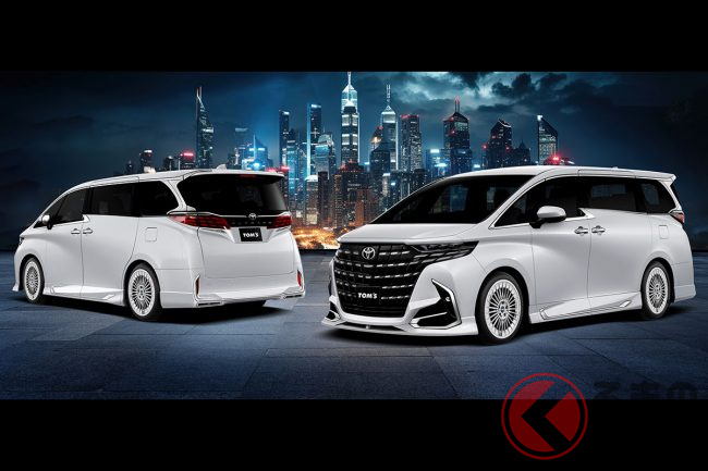 トヨタ車のカスタムパーツを手掛けるトムスは2023年10月17日、6月に発売された新型「アルファード」向けのカスタマイズパーツ「TOM’S スタイリングパーツセット」および「専用アルミホイール」を発表しました。