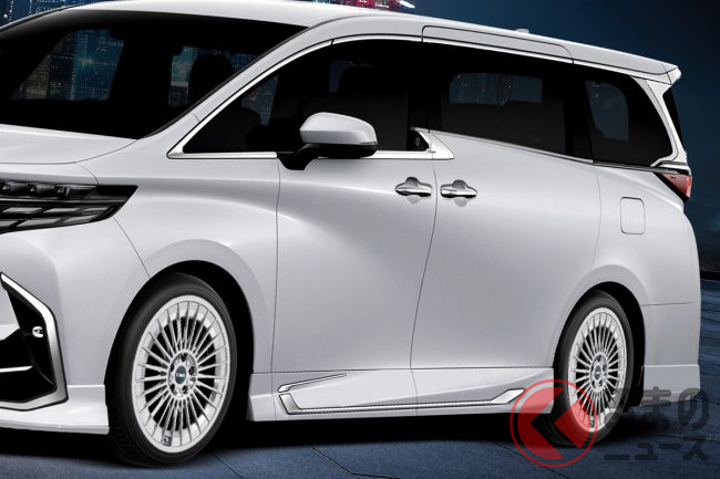 トヨタ新型「アルファード」“ド迫力エアロ仕様”初公開! 存在感爆上げメッキが超カッコイイ! 新カスタムパーツがトムスから登場
