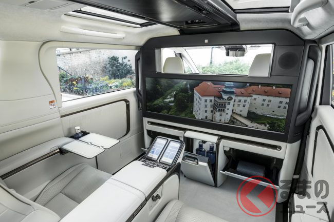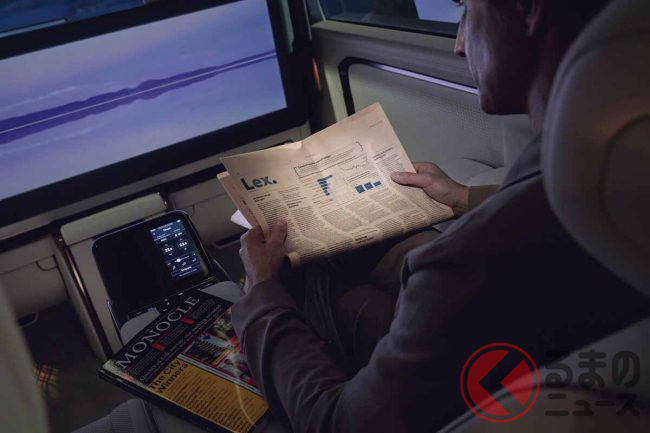 例えば、フロントとリアの間に48インチのウルトラワイドスクリーンを内蔵した仕切りがあり、プライバシーを確保するために暗くできる開閉式のガラスパネルも装備しています。