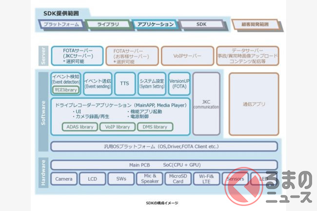 JVCケンウッドの通信型ドライブレコーダーは、高画質な映像を実現するとともに、通信機能により、車両の位置情報や映像を管理者へ送信することができます。また、同社独自の「Software Development Kit(SDK)」により、IoT・AIベースのテレマティクスサービスの構築を短期間・低コストで実現できるとしています。
