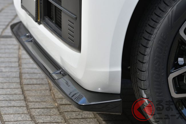 一方の「フロントロアスポイラー」は、フロントスタイリングにシャープなアクセントを加え、スポーティな印象を演出。標準バンパーより55mmダウンを実現した、迫力のあるものです。