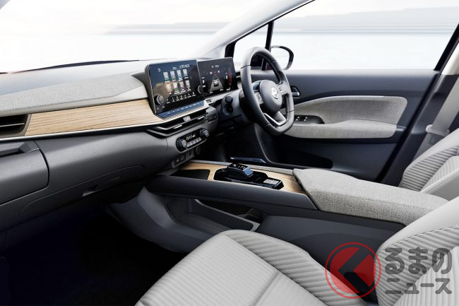 室内空間の寸法はノートと変わりませんが、シートやダッシュボード、アームレストなど、ユーザーが直接触れるパーツ素材に、高級スーツにも使用されるツイード織物に模した生地を採用。