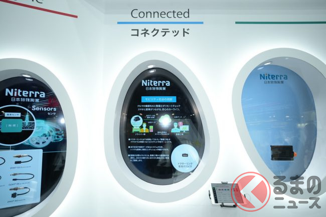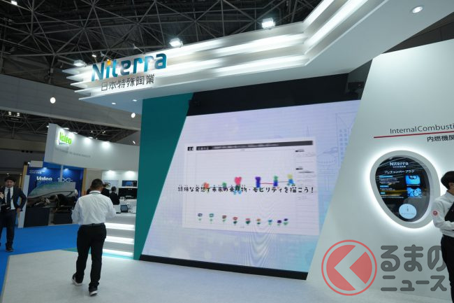 英文社名をNGK SPARK PLUGからNiterra(ニテラ)へと変更した日本特殊陶業は、東京ビッグサイトで2023年10月26日から11月5日(一般公開は10月28日から)に開催されている「ジャパンモビリティショー2023」において、“Sparkle”をテーマに、未来のモビリティを輝かせるヒカリ・キラメキ・輝きを、現代そして未来へ向けた同社の製品群を通して紹介しています。