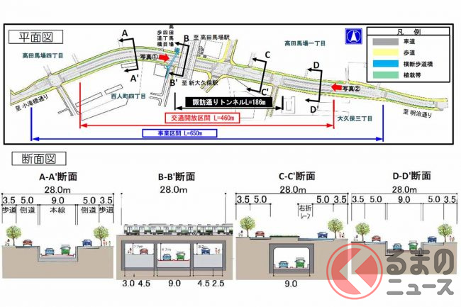 山手線直下の「諏訪通りトンネル」11月開通! 小滝橋交差点改良とセットで「早稲田‐中野」の東西移動が楽に