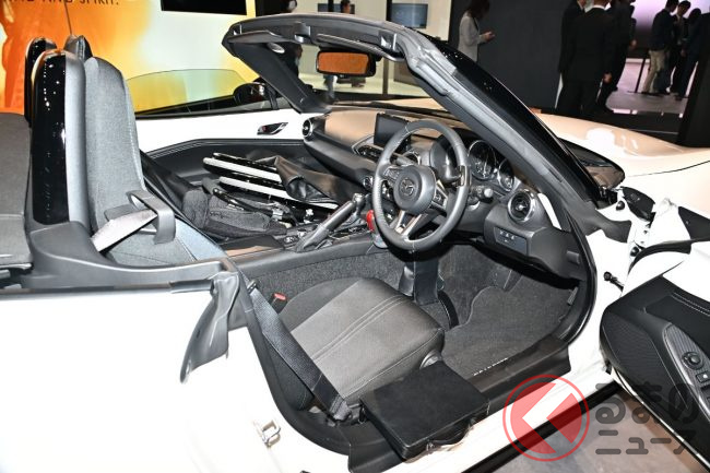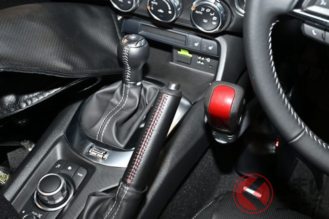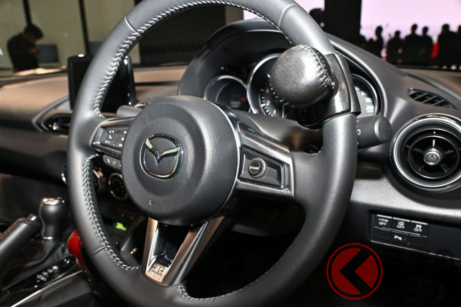 マツダが“斬新シフト”搭載の「ロードスター」公開! ハンドルには「加速ボタン」も採用!「最も優しいロードスター」開発に込めた熱い想いとは