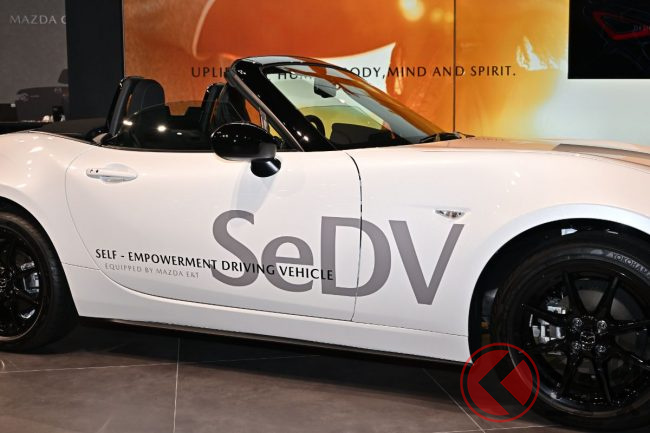 2023年10月25日から開催された第1回「ジャパンモビリティショー2023(JMS2023)」で、マツダはオープンカー「ロードスター」に手動運転装置(Self-empowerment Driving Vehicle:以下、SeDV)を搭載した福祉車両仕様を出展しました。