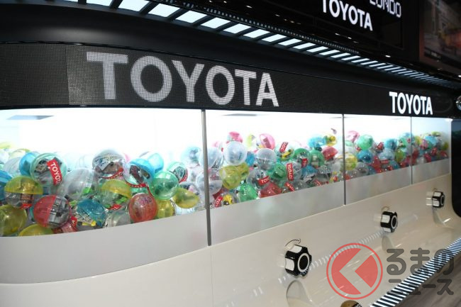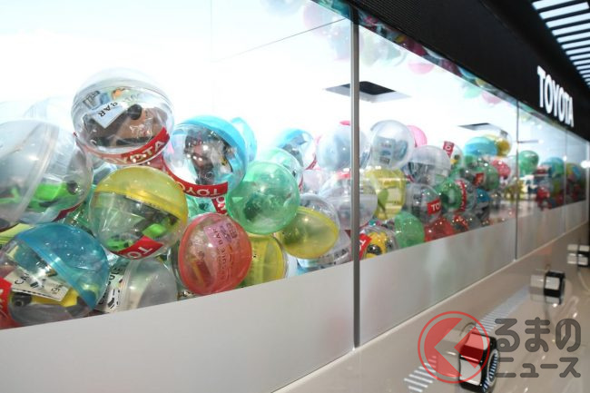 レバーを回してカプセルが出てくるかカプセルトイ(ガチャガチャ)ですが、「ジャパンモビリティショー2023」のトヨタブースに展示されました。