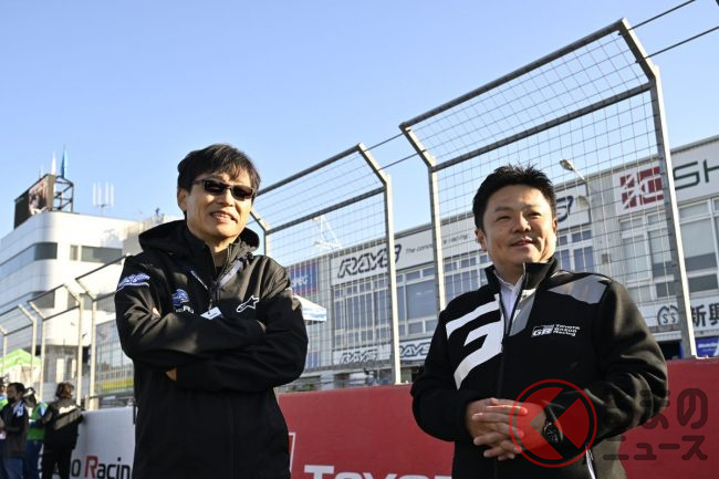 そんな中、筆者(山本シンヤ)が取材でパドックを回っていると、GR86 CNFコンセプトの開発責任者・藤原裕也氏の姿があり、前回のもてぎで話していた「岡山は視察に行きます」という言葉通り現地に来ていたようです。そんな藤原氏は次のように話してくれました。