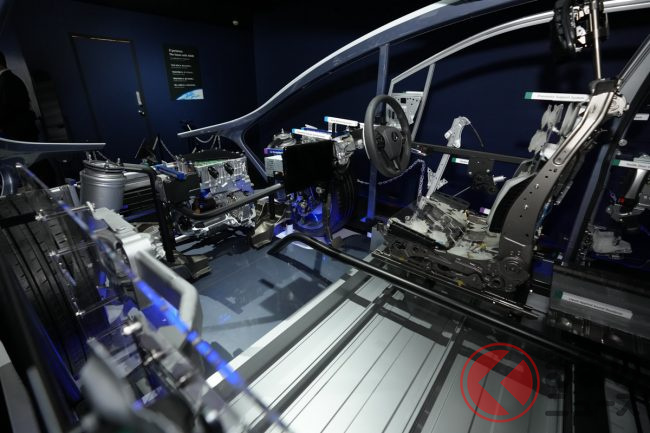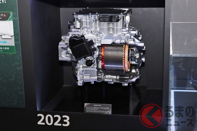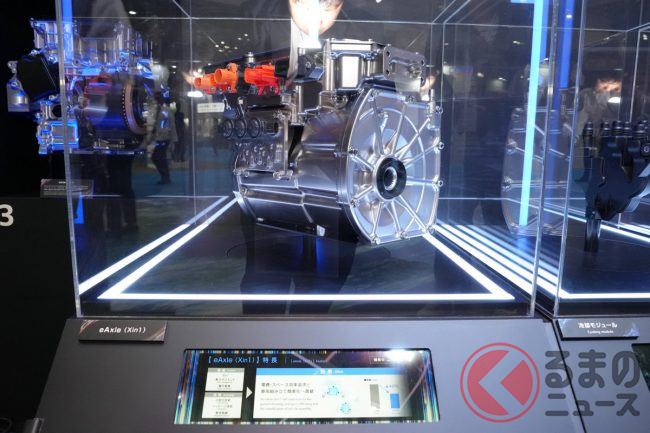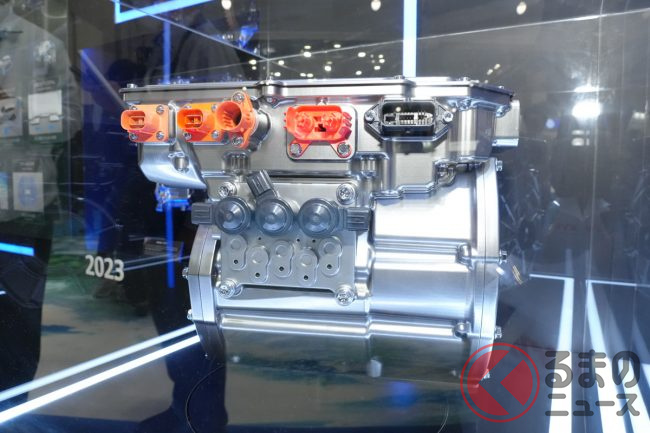 特に、BEV化の中核となるeAxleは、小型・集積化の技術でさらなる進化に向けた開発が進められており、モーター、ギア、インバーターを一つに統合した3in1の構成に、熱マネジメントシステム、電力変換器などの機能を加える「Xin1」の新型eAxleを2027年の市場投入をめざして開発中とのことです。