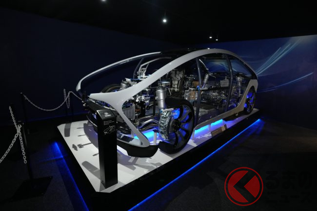 そのほか、アイシンブースでは、eAxleや回生協調ブレーキ、リンク式パワードアシステムをはじめとする車体製品など、クルマの「走る・曲がる・止まる」に関わる幅広い製品をBEVコンセプト「i-mobility BEV Concept」で紹介しているほか、未来の“移動”に貢献するアイシンの技術を音と映像で迫力満点に体感できる没入型体験シアターを展開しています。