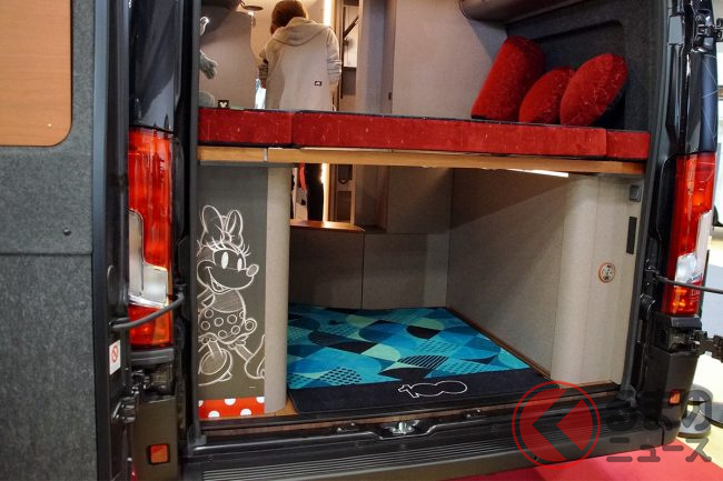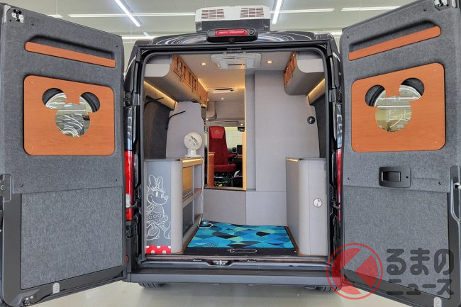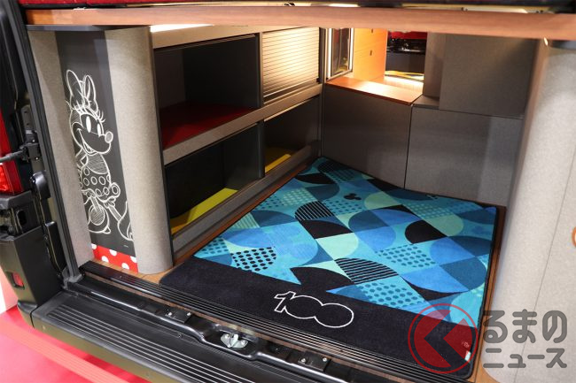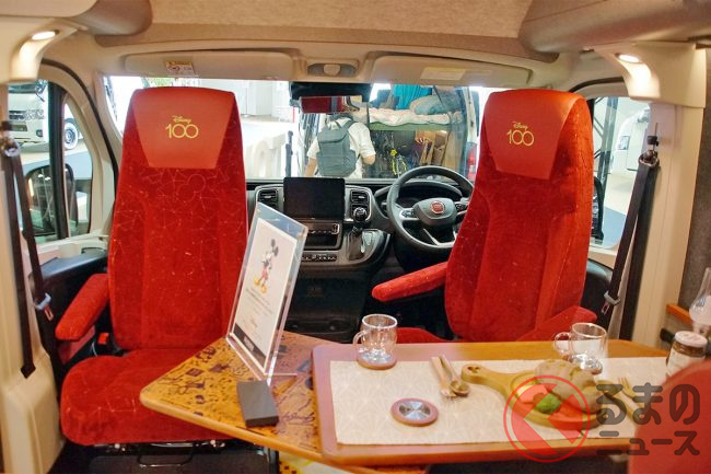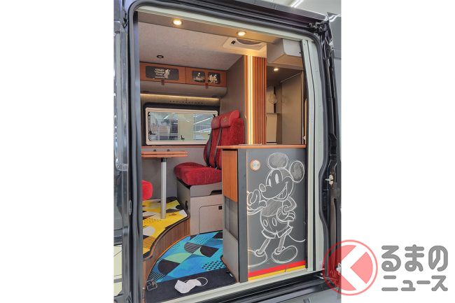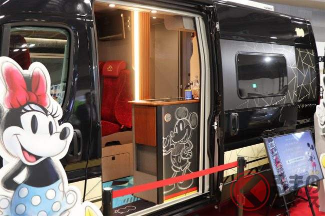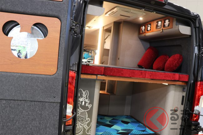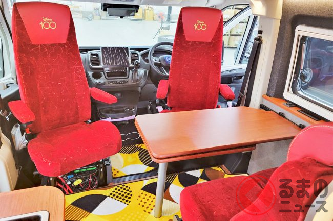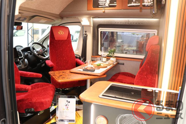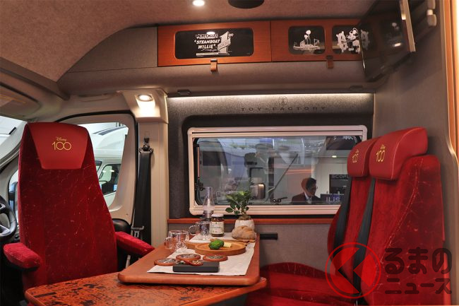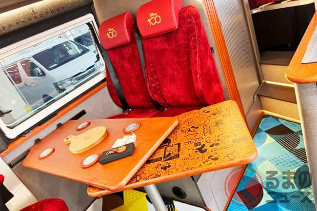 2000万円超えの「車中泊カー」世界初公開! 鮮烈「赤」内装のオシャレ仕様! 限定わずか5台!? 抽選販売の激レア「Disney100」仕様とは