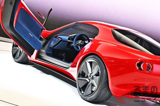 マツダ新型「コンパクトスポーツカー」世界初公開! 斬新ライト×2ドア流麗ボディがカッコイイ! ロータリー搭載で「RX-7」を意識?