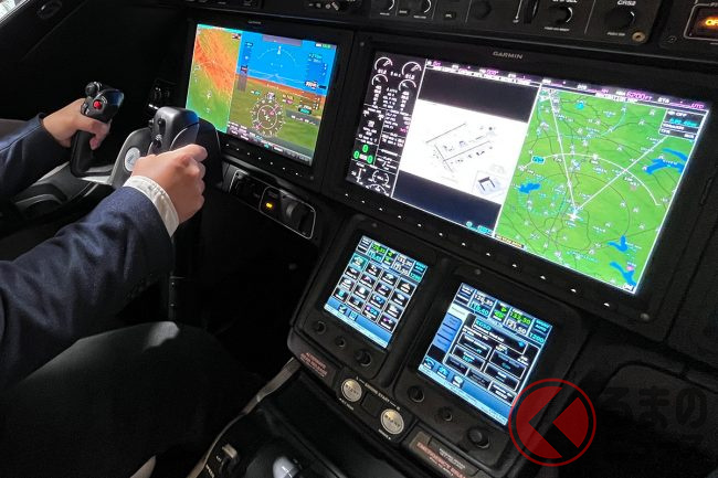 今回はコックピットに座ることもでき、着座すると少し狭い印象を覚えますが、外を見た際の視認性はとても高いものでした。